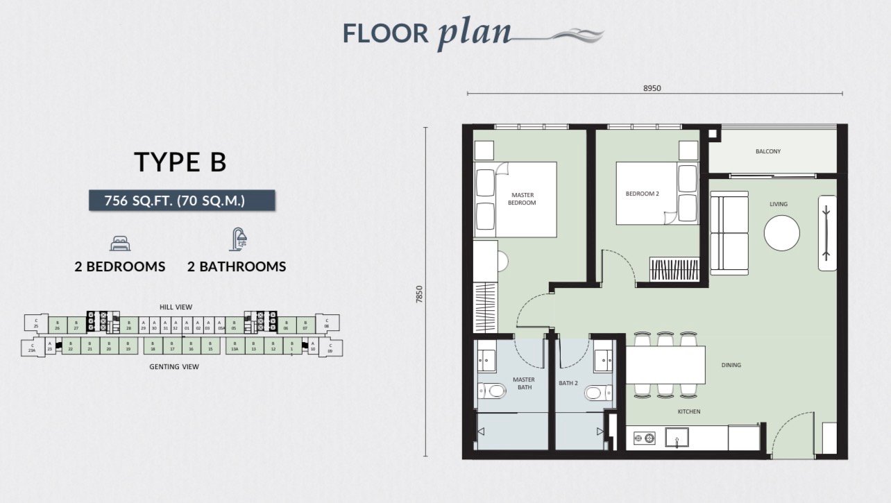 he serviced apartments at Breeze Hill come with a comprehensive fully furnished package, featuring designer fittings and premium furniture curated for a “plug-and-play” investment or vacation home experience. Every unit—from the compact studios to the three-bedroom suites—is thoughtfully designed with column-free layouts to maximize interior space and flexibility. The furnishing includes sleek kitchen cabinets, high-quality flooring with slip-resistant honed tiles, and bedrooms tailored to fit king or queen-sized beds comfortably. This hassle-free setup, combined with natural ventilation that draws in the cool mountain air, ensures the residences are move-in ready for owners or immediately available for the high-demand Genting short-stay rental market.