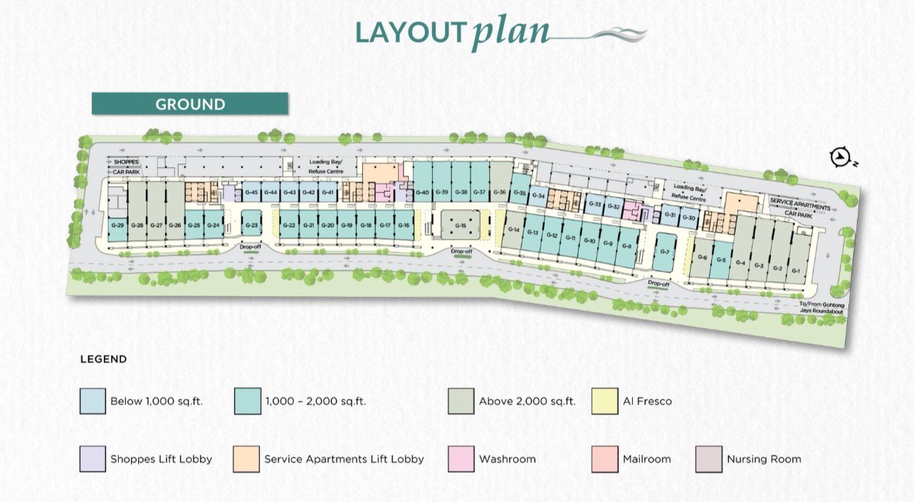 In contrast, the Breeze Hill Shoppes are offered as versatile unfurnished retail lots, providing business owners a blank canvas to customize their brand identity. These exclusive 90 units are engineered for high-impact commercial use, featuring wide 9-meter frontages and double-frontage options that significantly enhance visibility and customer accessibility. A standout architectural feature is the ground-floor high ceilings of up to 8 meters, allowing for spectacular double-volume conversions or mezzanine levels. This combination of expansive storefronts and soaring vertical space creates a premier al-fresco-inspired lifestyle hub, perfectly suited for flagship cafés, artisanal boutiques, or wellness centers looking to capture the massive tourist footfall in Gohtong Jaya.